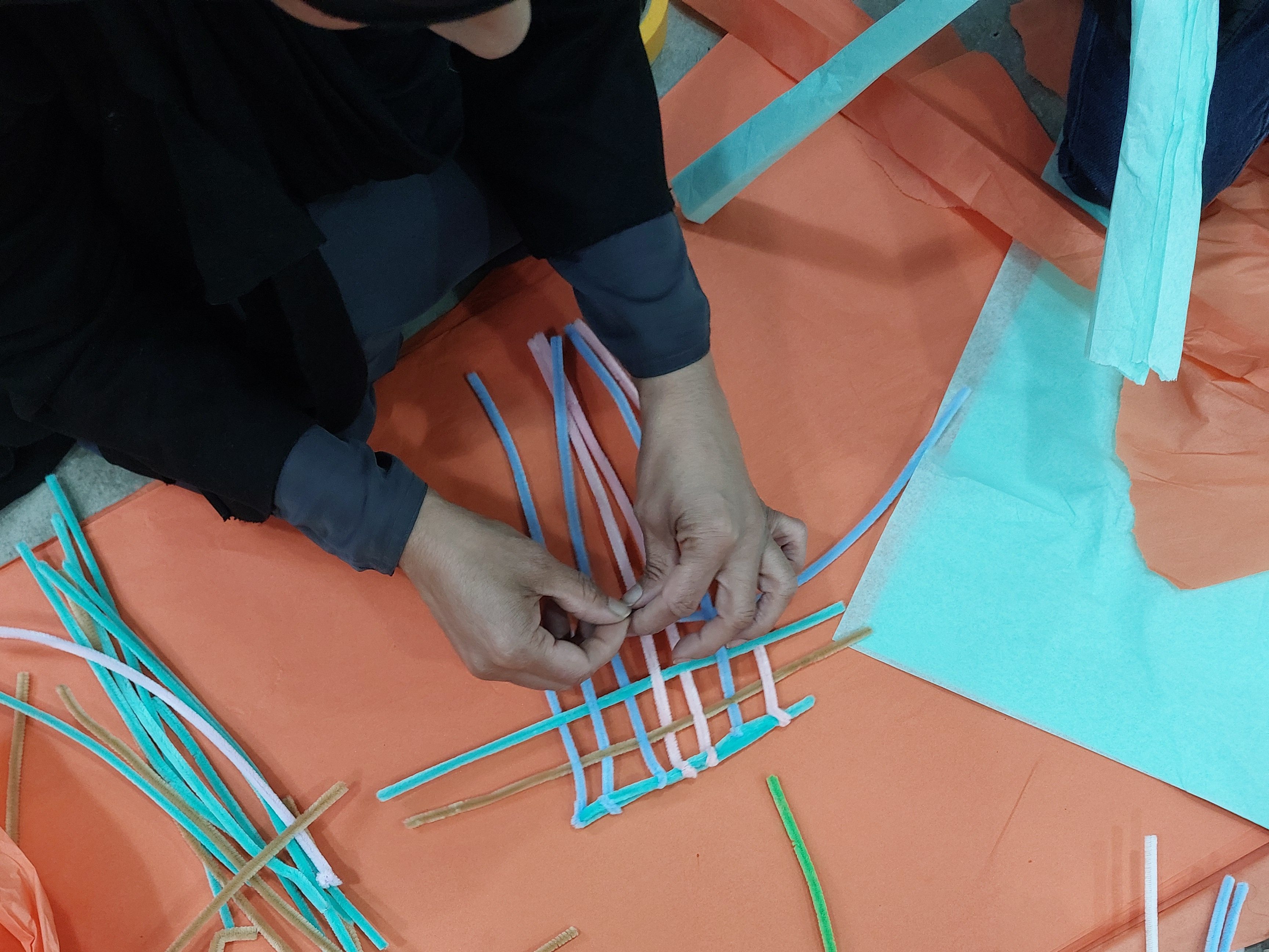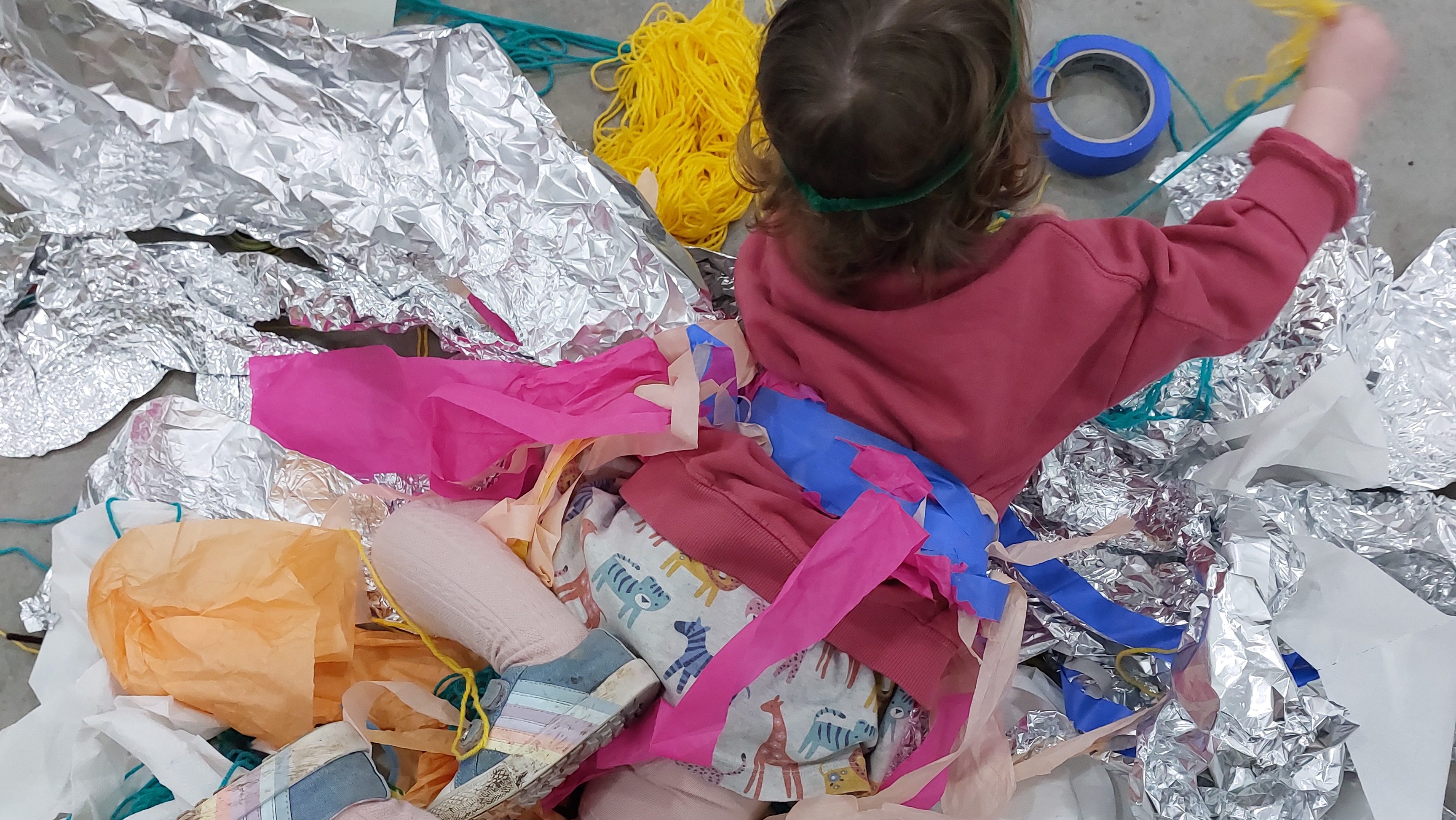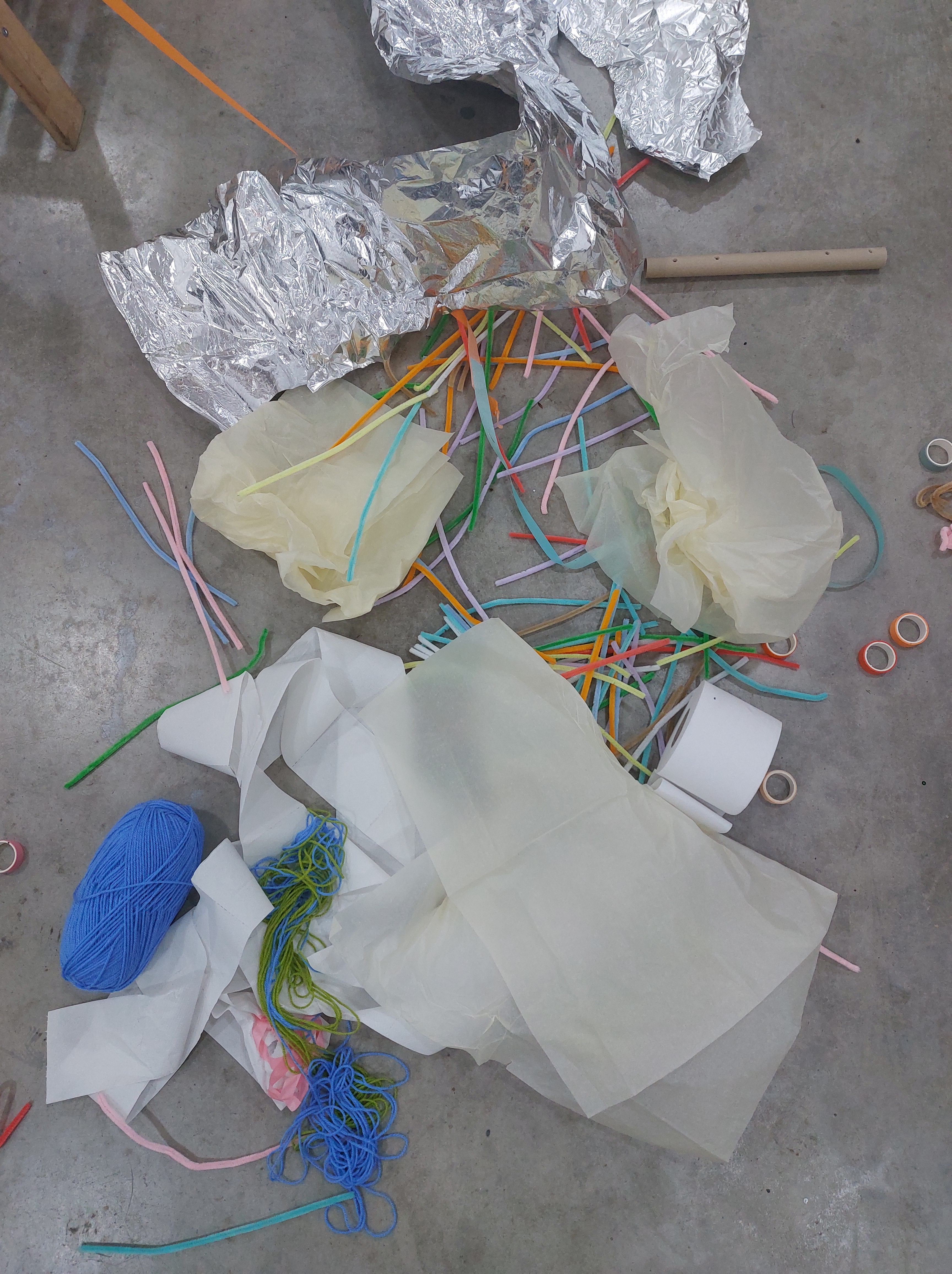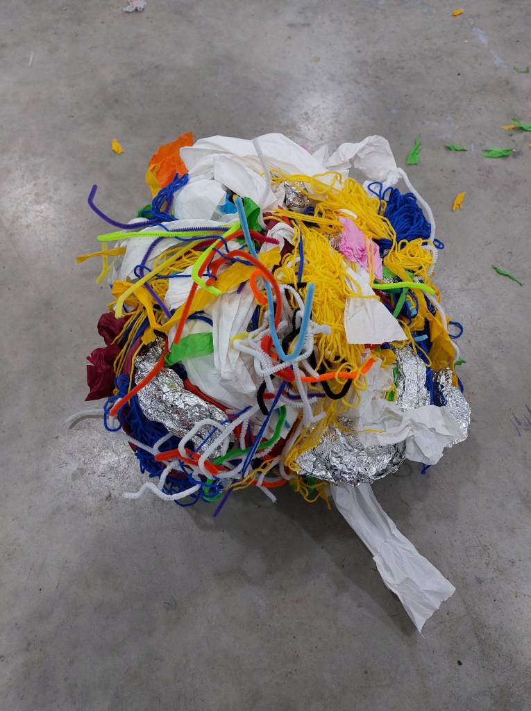 The “sculpture bundle” was another outcome. Gathering and binding the aftermath of play presented a new possibility for co-produce sculptural forms.
